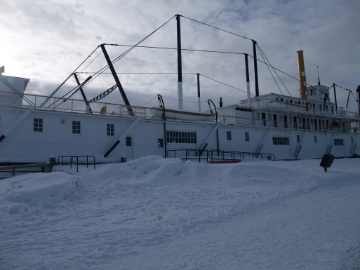 そのクロンダイク号はホワイトホースとドーソン・シティ間を貨物や人員を輸送していたが道路が整備されて役割を終え、その後、観光船としても使われたが、現在はカナダの国定史跡に登録され、こうして川のほとりで一般公開されているのだそうだ。船の内部には水上交通の歴史なども展示されているが冬場はクローズとなっており中には入れないとのこと。