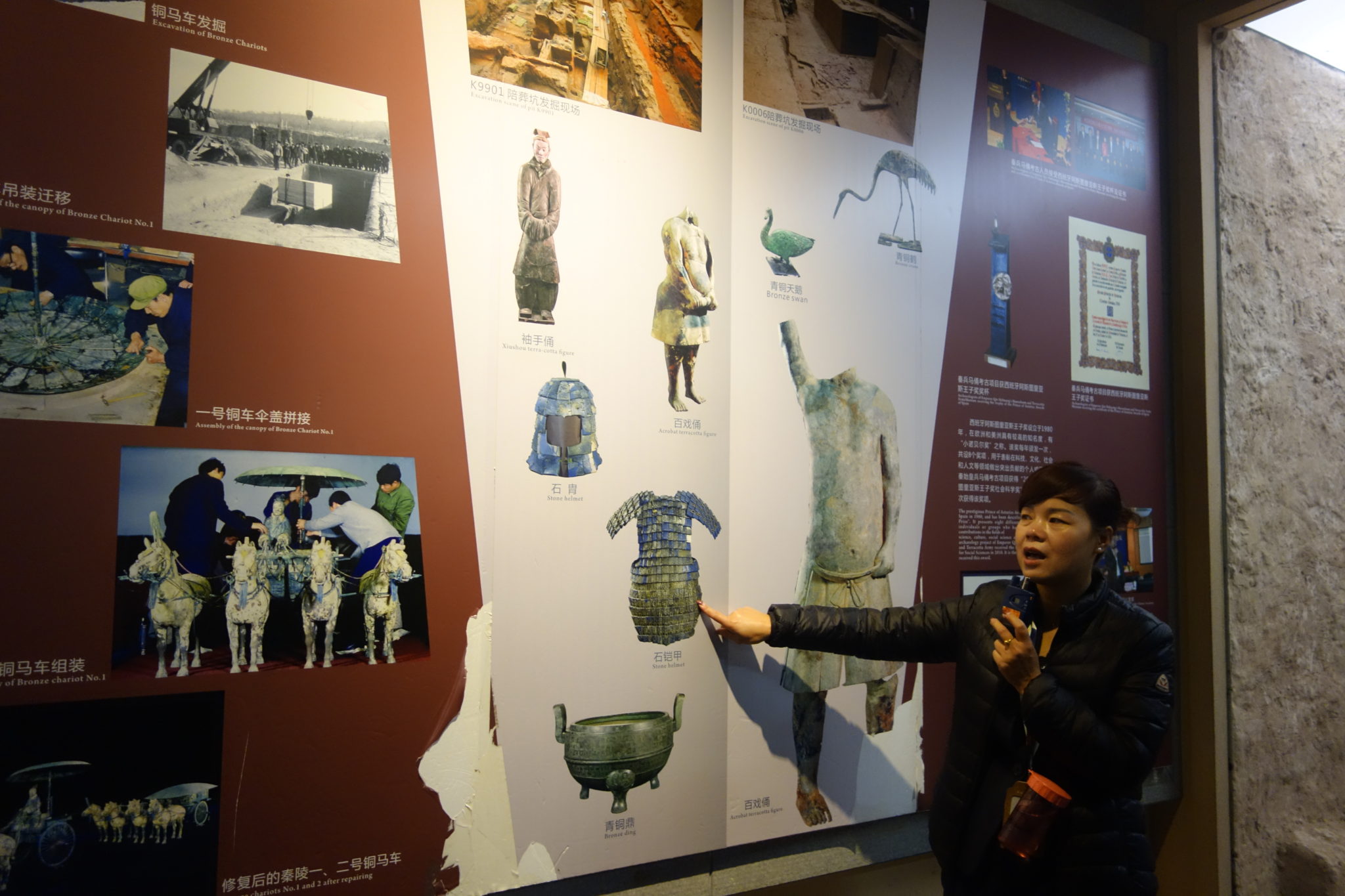 銅車馬の大きさは実物の二分の一、3千以上の部品から出来ていて金銀をふんだん使って装飾している、その上、龍や鳳などの紋様も刻されているので修復に何年も掛かった。実際、設計図なんかない中での復元作業は想像を絶する困難なものであったと思う。