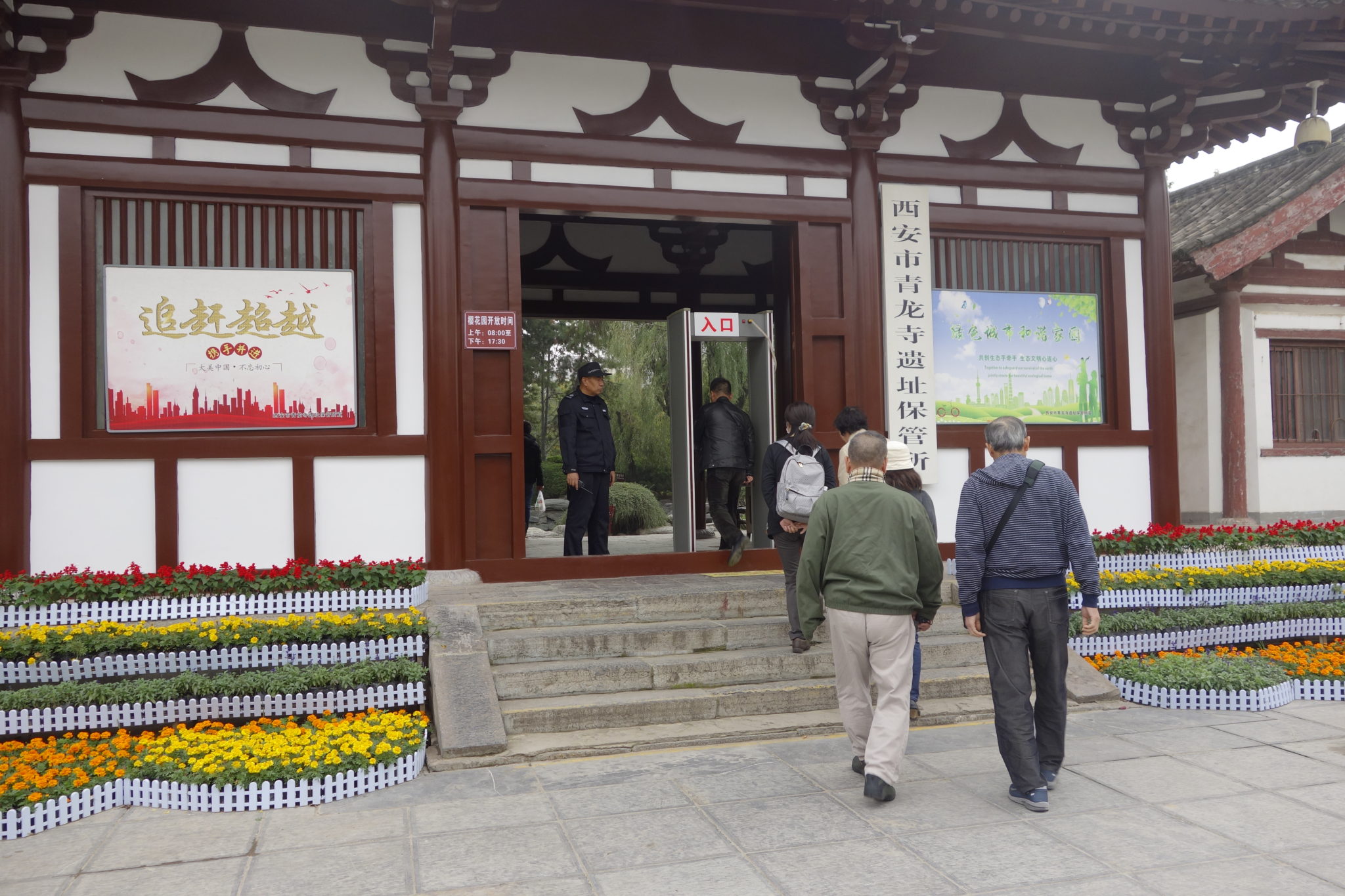 入口の傍の記念碑には1996年に中国国務院が長安遺跡の青龍寺遺跡を全国重要文化物に指定したとある。長安時代の瓦の欠片などが発掘された処に青龍寺が再建されていると云うことのようだ。