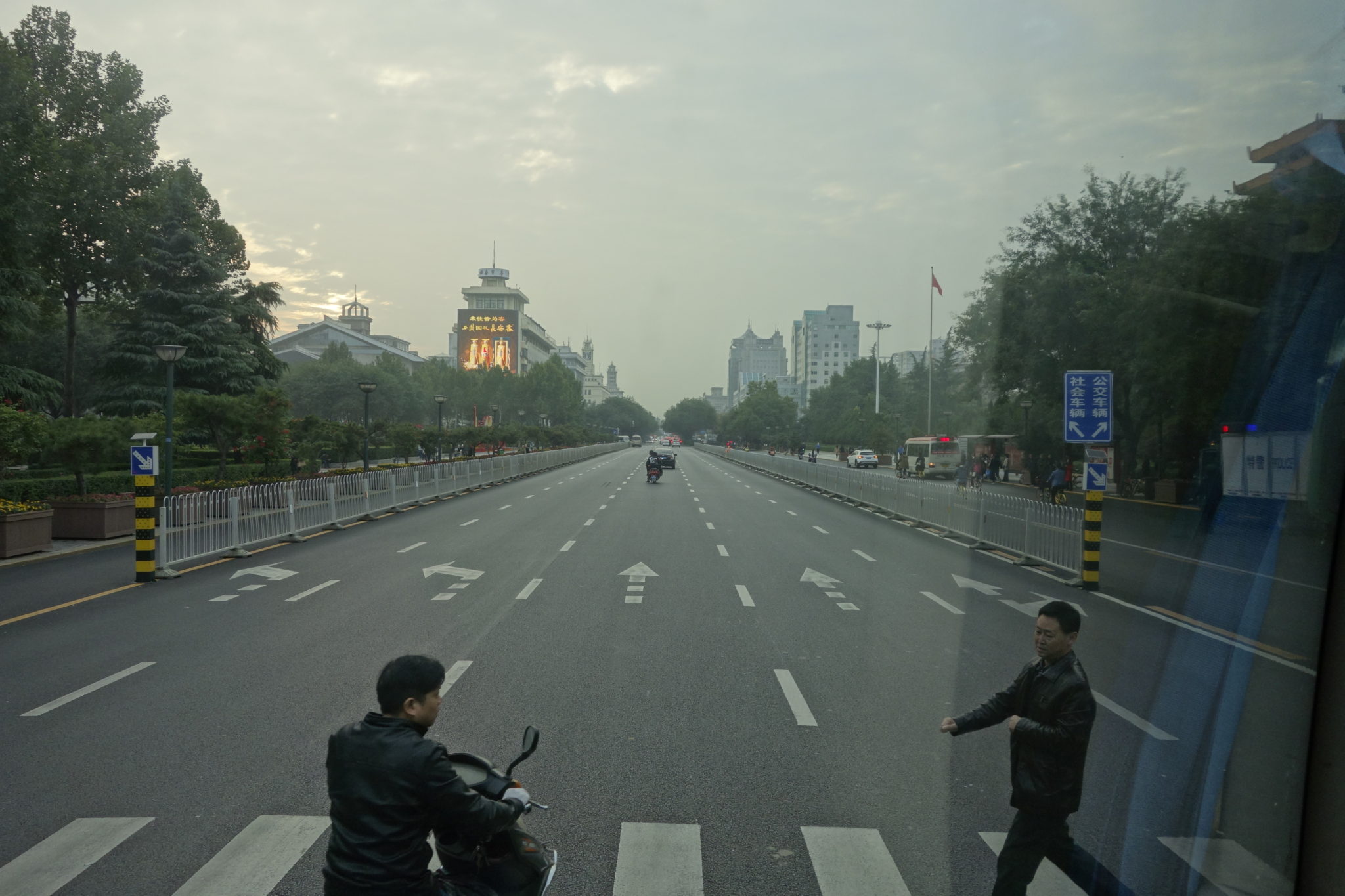 本日の観光はこれで終わり、大阪の御堂筋よりちょっと立派な西安のメインストリートの歩道を歩いて鐘楼の傍の特発長で餃子の夕食を食す。