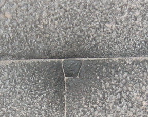 虹の神殿の壁には指先ほどの太陽神殿で1番小さい石組みがある、石工がユーモラスに自分の技術を誇示したのだろうか。