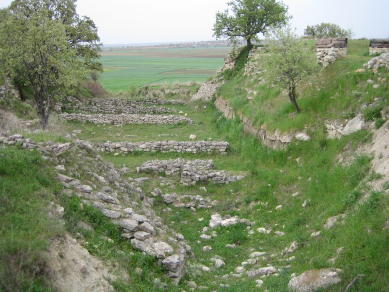 2つの神殿の壁は内側にすこし傾斜しており、対震構造の技術が使われていた。