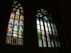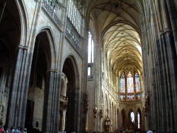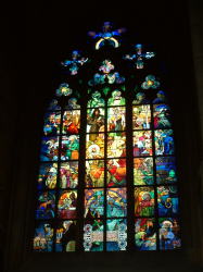 その後何度も改修され17世紀末になってファサードが錆色と白で塗り分けたバロック様式に作り変えて現在の姿になったらしい。2つの塔は同じ大きさではなく、右の塔が少し太くアダムで右がイブだとはガイドの説明。聖イージ教会はプラハのロマネスク建築の傑作といわれている。