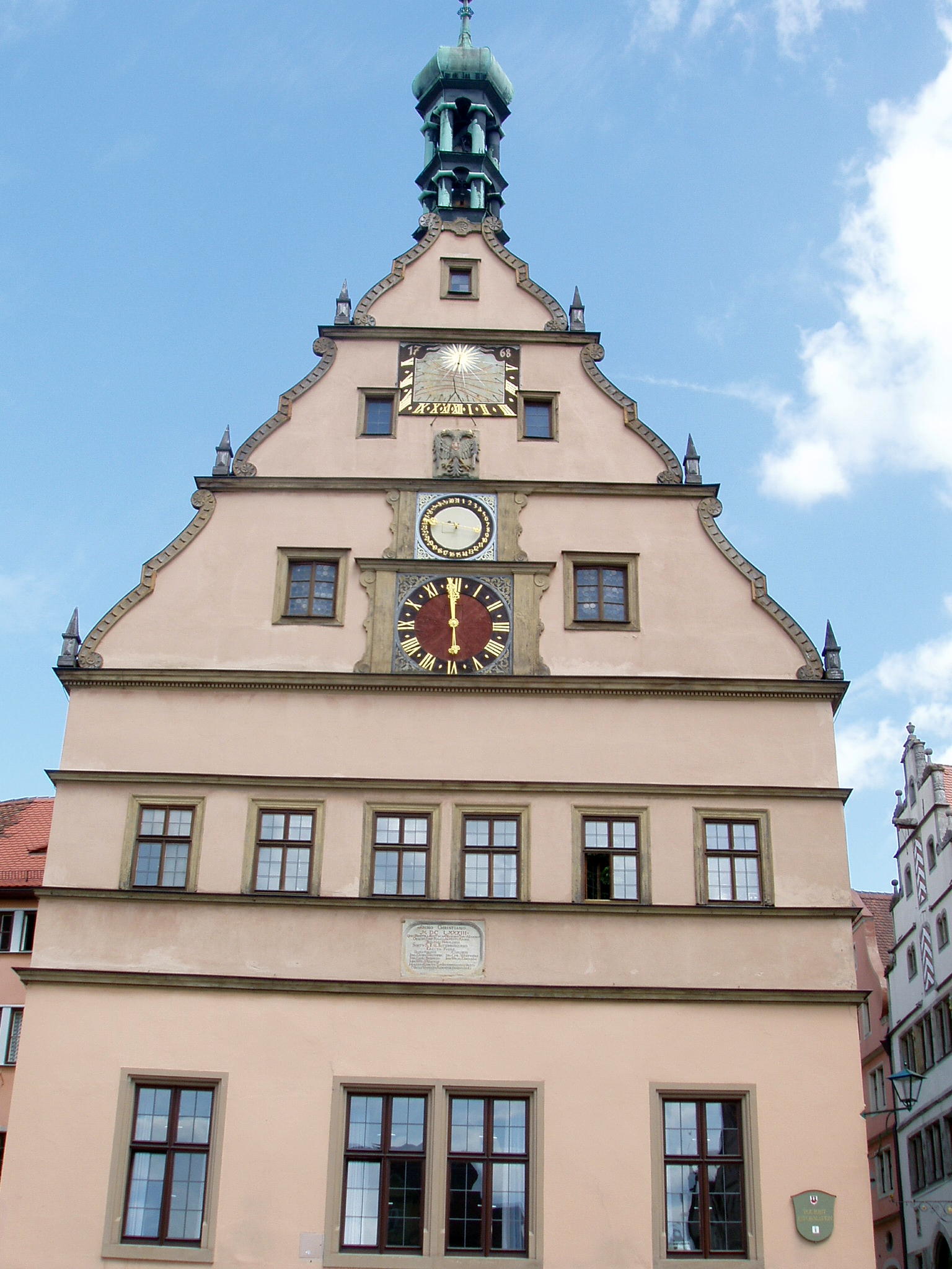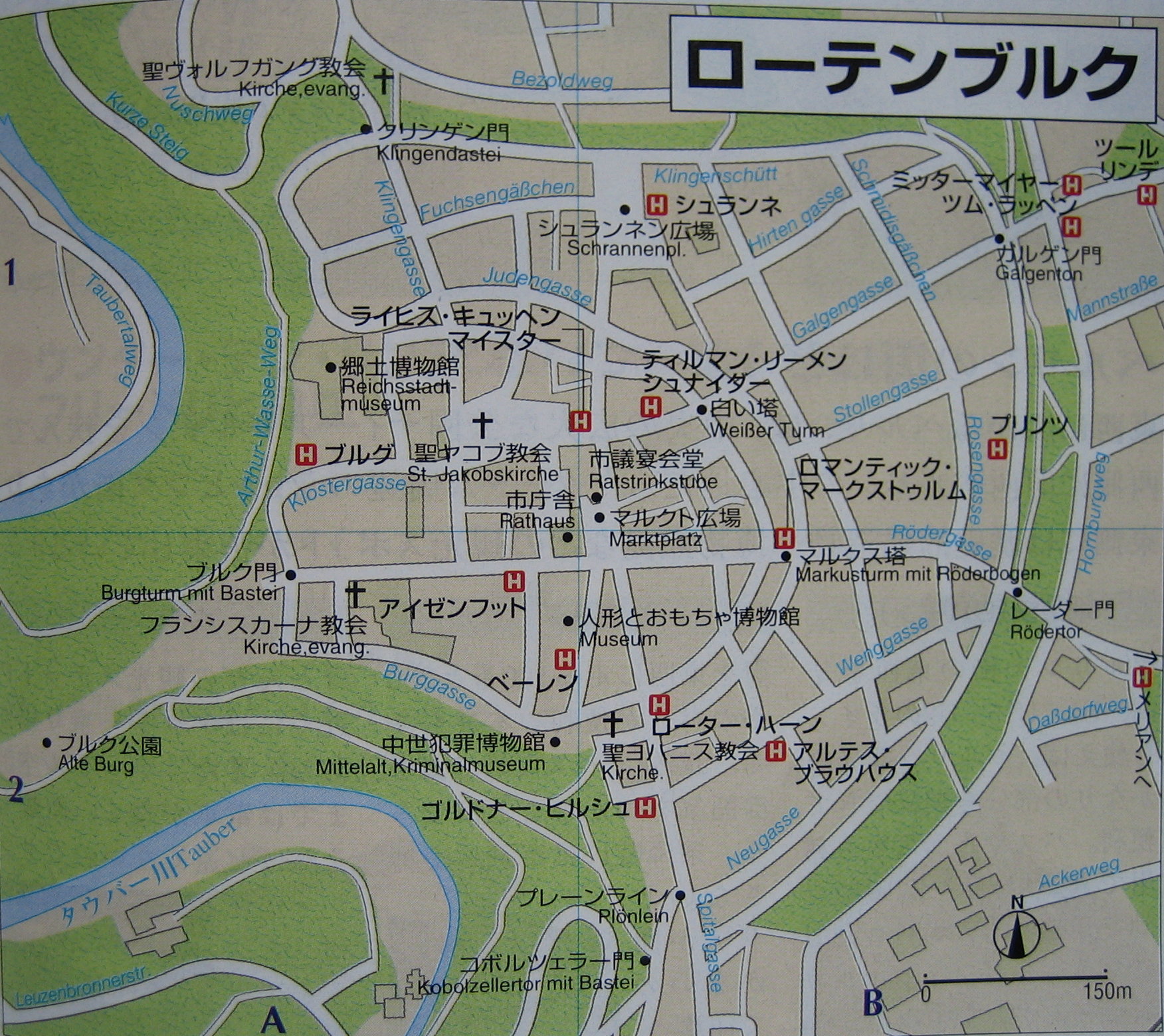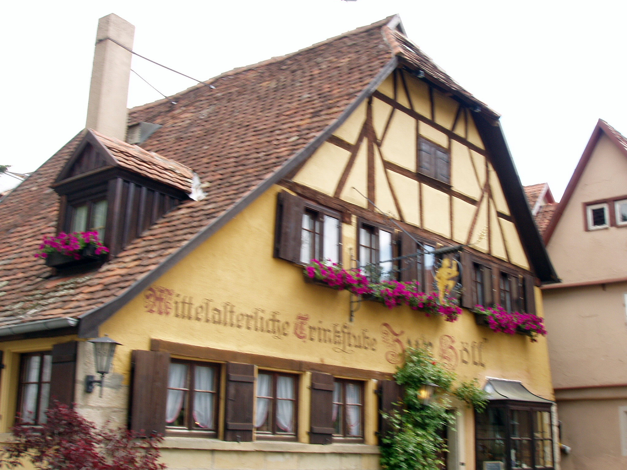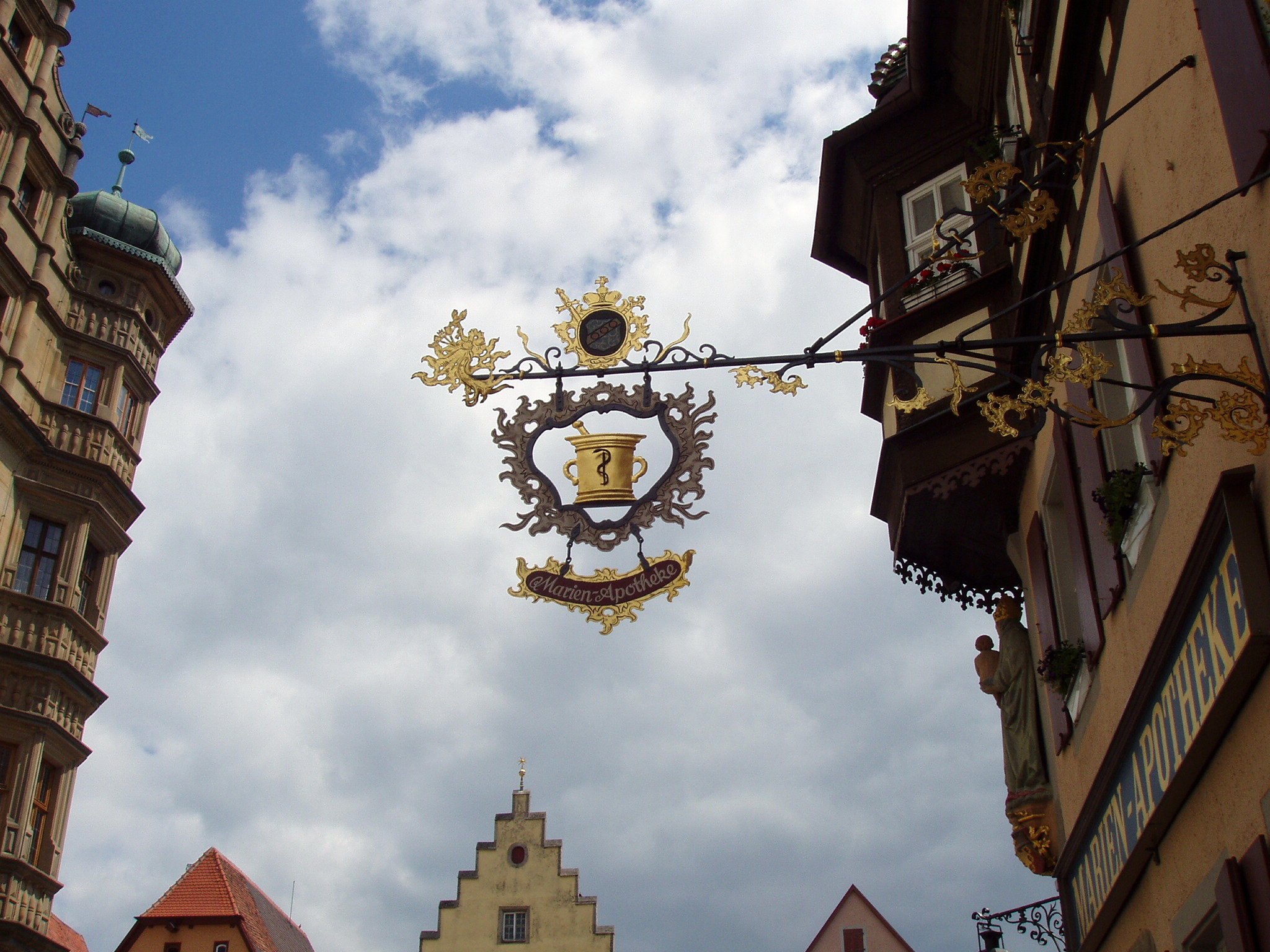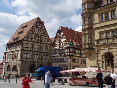 ローテンブルグも中世風の看板が家々の2階から道路に向かって突き出している、パン屋、クスリ屋、ホテルなど趣を感じる。1年中クリスマス用品を売っている店や人形博物館、聖ゲオルクの泉などを見る。