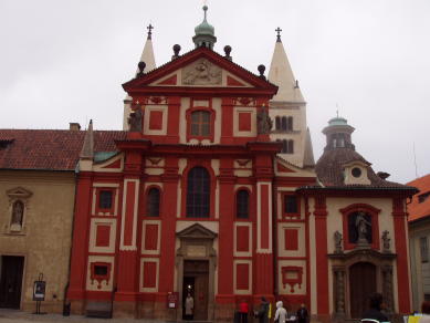 聖イージ教会はプラハ城で一番古い建物。10世紀初頭に木造で建てられた教会は火事で消失し、12世紀に2つの塔を加えて石造でロマネスク様式の教会に再建された。