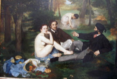 「オランピア」は神話のヴェールを剥いで生身の裸体の美しさを描いたものと納得的であるが、こちらは森のピクニックという憩いの場にいきなりヌードが現れた感じで、絵の素養はなく、ただ絵を見るのが楽しいと思ったりしている輩は困惑、混乱してしまう。