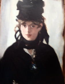 すみれの花束をつけたベルト.モリゾ:ベルト・モリゾは印象派の女流画家、モネと交流があった。喪服姿の女性は美しいと言われるが、このすみれの花束をつけたベルト・モリゾは大きな黒い目でまっすぐ正面を見つめ、かすかに笑みを浮かべている。知性に溢れ、気品が感じられる女性の肖像画となっている。見る者を惹きつける「すみれの花束をつけたベルト・モリゾ」は女性の肖像画としては群を抜いている。