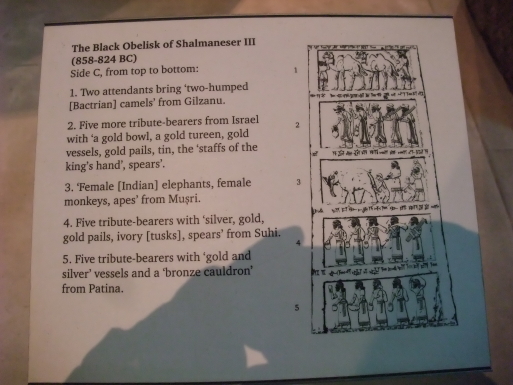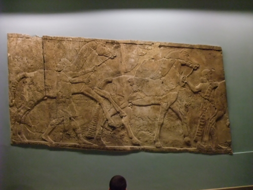 アッシュールバニパルがエラム軍を打ち破りテウマン王の首を取った‘ティル・トゥーバの戦い’と、その首を近くの木の枝につるして王宮庭園で宴を催した‘庭園での饗宴’のレリーフは傑作との評判であるので是非見たいと思っていたが、どうやら見逃したようだ。