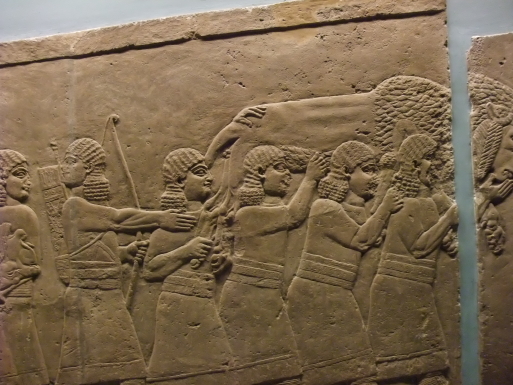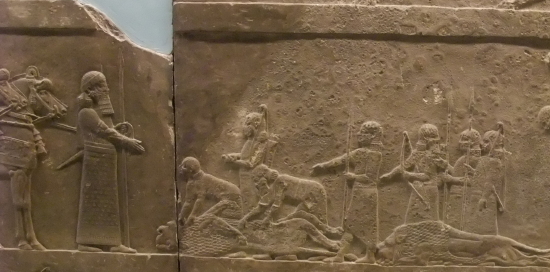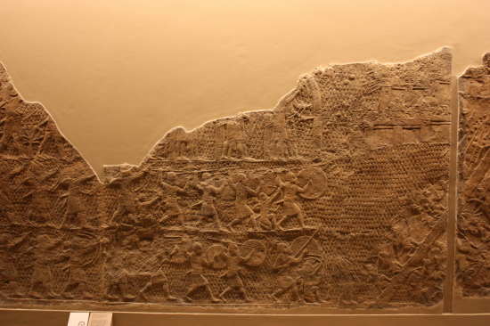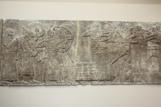 アッシリアの王たちは治世のほとんどを軍事遠征で過ごしたと言われているので戦いの場面のレリーフには事欠かない。その幾つかを拾ってみる。