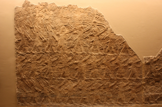 ニムルドのアッシュールナシパル2世宮殿とニネヴェのセンナケリブやアッシュールバニパル宮殿を飾っていたレリーフがそれぞれRoom7-8とRoom9の両壁に数十メートルに亘って展示されている。