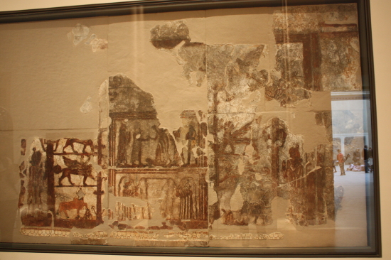 部屋の真ん中に置かれた楕円形の椅子に座ってぼんやりしていると、英語が話せますかと50~60才くらい?のご婦人に声をかけられる。聞けば、キャノンの一眼レフをノーフラッシュにする仕方が分からないので困っているとのこと。デジカメと違って一眼レフではモードダイヤルにノーフラッシュのマークがあるので慣れないと分かりにくのかも知れない。モードダイヤルを回してノーフラッシュにしてあげると嬉しそうである、ノーフラッシュにしないとここでは日本の高級カメラも用をなさない。(この後、顔を合わす度に微笑みながらかすかに頭をさげる仕草をされるので、少しは役立ったのかと気分がよい)