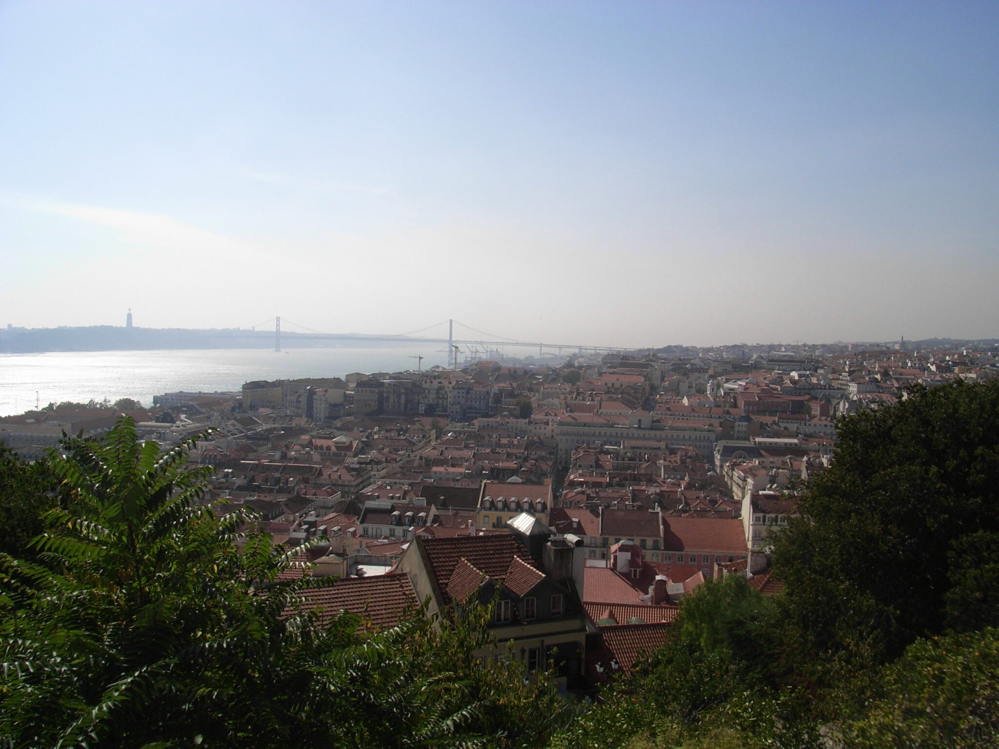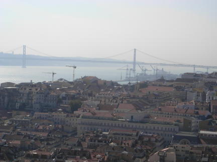 王宮跡は城址公園となっていて、入場料は€5。公園の中ほどにアフォンソ・エンリケス像が立っている。城壁に沿って王宮跡を回り、テージョ川、対岸、リスボン市街のパノラマを楽しむ。時間がないので北側の城塞に上るのを断念、同行の母娘と別れて大聖堂に向かう。