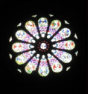 中央祭壇と有名なバラ窓をカメラに収めて次を急ぐ。