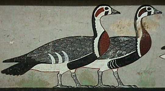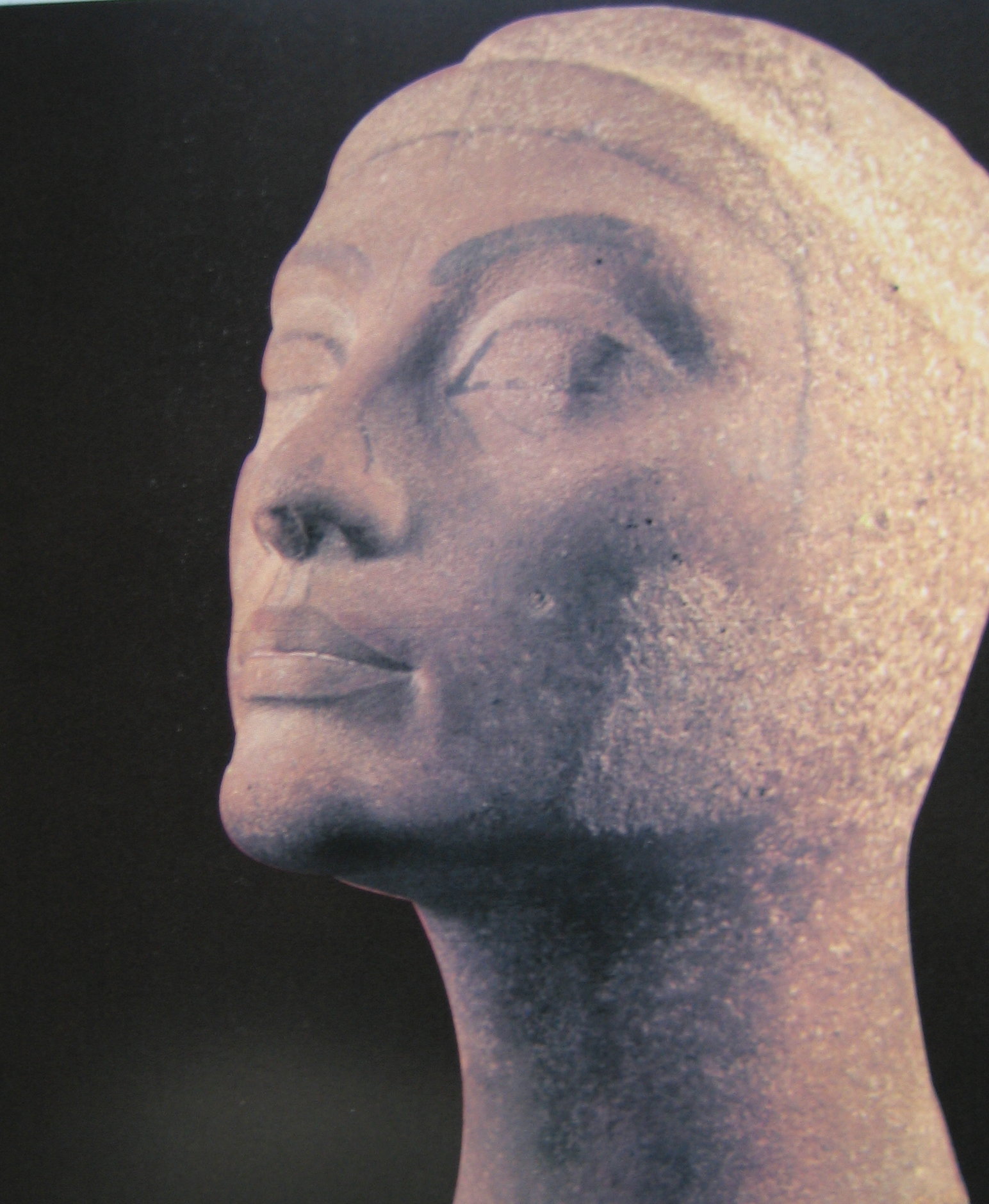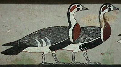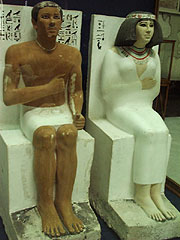 ラーホテプは赤茶色に彩色されやや上目ずかいに正面を凝視している姿は威厳がある、ネフェルトの方はクリーム色で白い服をまとっている、顔や胸がふっくらとしており穏やかな感じである。