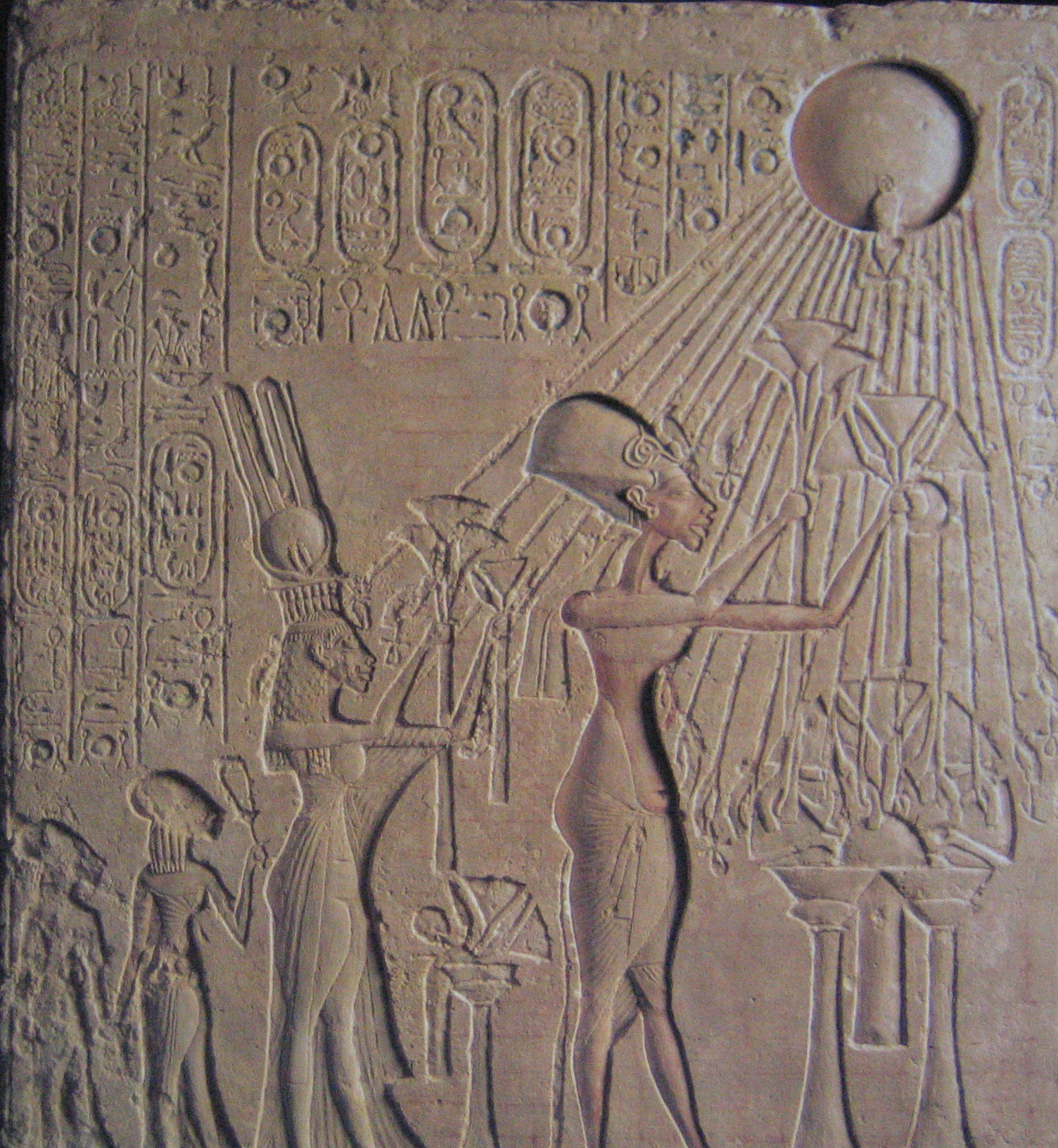 少し進んだ3号室にはアクエンアテン王の巨像4体がある、面長の顔は端正であるが腹が異常にふくれている。実際、王は下腹部がふくれていたようで、美化することなく自分をそのまま彫らせたらしい。