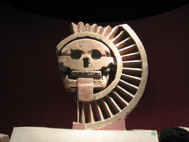 不気味な髑髏は太陽神トナティウを表しているのだそうだ、太陽のピラミッドの前で発見された。