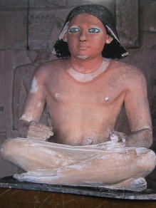 この部屋の書記坐像は膝の上にパピラスの巻き物を広げ、右手は書き取りの準備が出来ていますといった様子である。顔は端正でいきいきとしている。部屋の左手には木造のカ・アペル像があり、力強さを感じさせる。