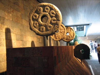 アステカ室への通路にサッカーボール大の球が展示されている。