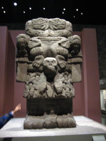 太陽の石の前方に展示されているジャガー像は迫力満点と感心していたら、背中に穴がありアウシカリと呼ばれる生贄の心臓を入れる容器と聞いてびっくり。