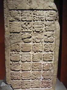 マヤ文字が刻まれた石碑がたくさん展示されているコーナーがあるが、マヤ文字についてはガイドさんにも分からないそうだ。