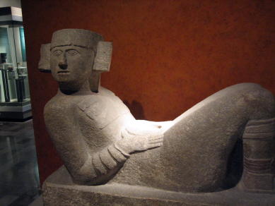 マヤ室の最後の展示コーナーにチャックモール像、腹の上に生贄の心臓をのせる皿をのせていてマヤ、お前もかと言った感じになる。
